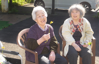 9月15日に敬老会を行いました。写真付きのメッセージカードを送らせていただき、お昼は希望を伺い、今年も海鮮ばらちらし寿司と果物を召し上がって頂きました。午後はカラオケ大会を行い、全員で歌を歌って楽しまれました。 9月27日には、暑さも和らぎ、入居者様から「外行きたいね」と話があり、施設の前で外気浴を行いました。摘んだ花を見たり、のんびり会話され気持ちよさそうに過ごされていました。