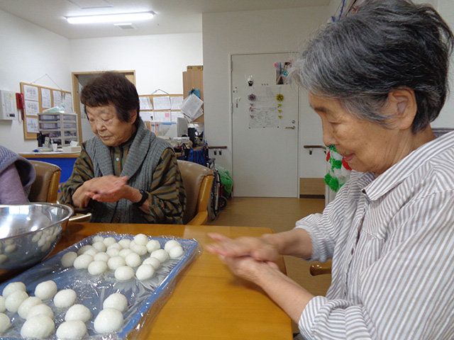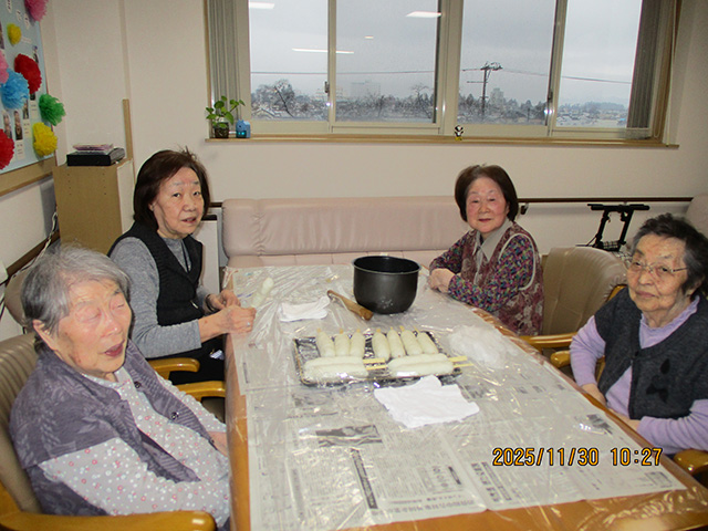 ユニット1では、お米を潰して丸めた「だまっこ」を作りました。出来上がっただまっこはお昼に召し上がり、新米のおいしさを堪能して頂きました。