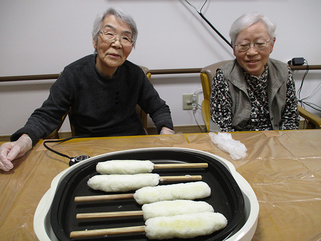 11月にはたんぽ作りにチャレンジし、出来上がったたんぽを美味しそうに召し上がられていました。